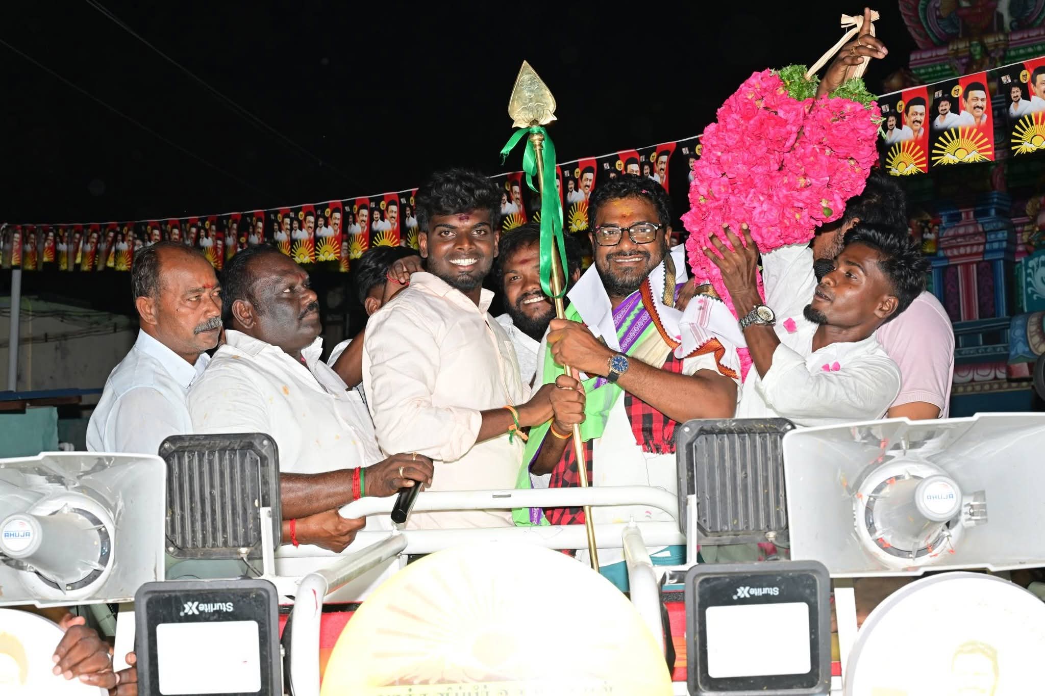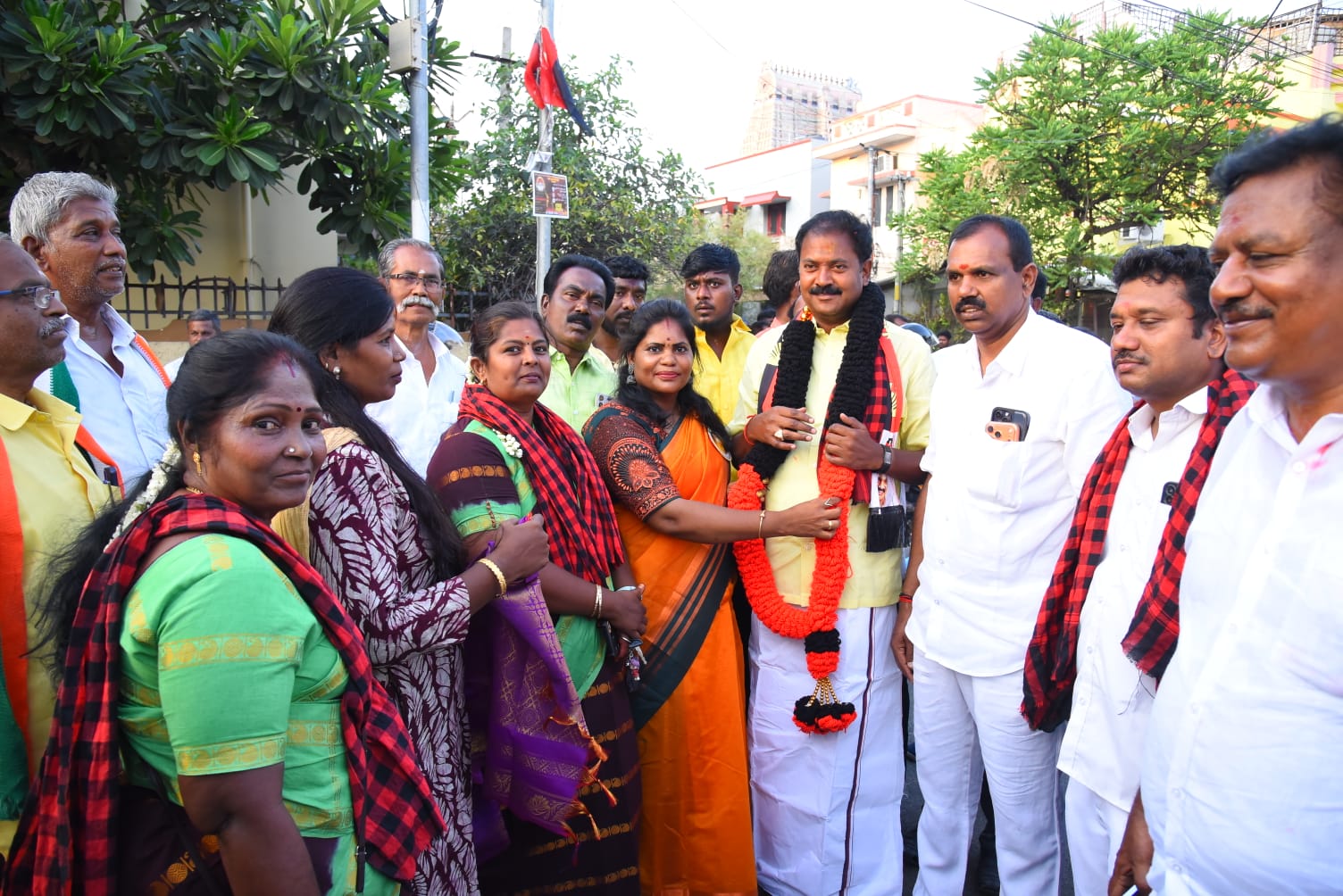 மண்ணச்சநல்லூர் தொகுதி திமுக வேட்பாளர் கதிரவன் வாக்கு கேட்டு செல்லும் இடமெல்லாம் பொதுமக்கள் உற்சாக வரவேற்பு அளித்தனர்:-