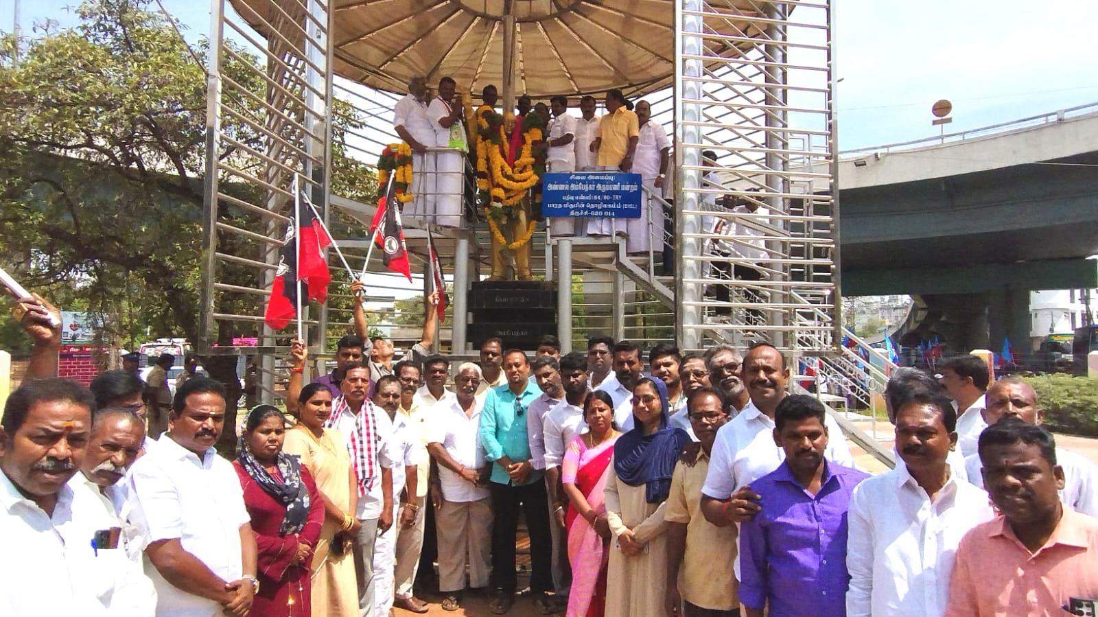 அந்த வகையில் திருச்சி அரிஸ்டோ ரவுண்டானா அருகே அமைந்துள்ள டாக்டர் அம்பேத்காரின் திருவுருவ சிலைக்கு அதிமுக சார்பில் திருச்சி மாநகர் மாவட்ட செயலாளரும், முன்னாள் துணை மேயருமான ஜெ.சீனிவாசன், தலைமையில் திருச்சி கிழக்கு சட்டமன்றத் தொகுதியில் அதிமுக சார்பில் போட்டியிடும் வேட்பாளர் ராஜசேகரன் அவரது திருஉருவ சிலைக்கு மலர் மாலை அணிவித்து மரியாதை செலுத்தினர்.