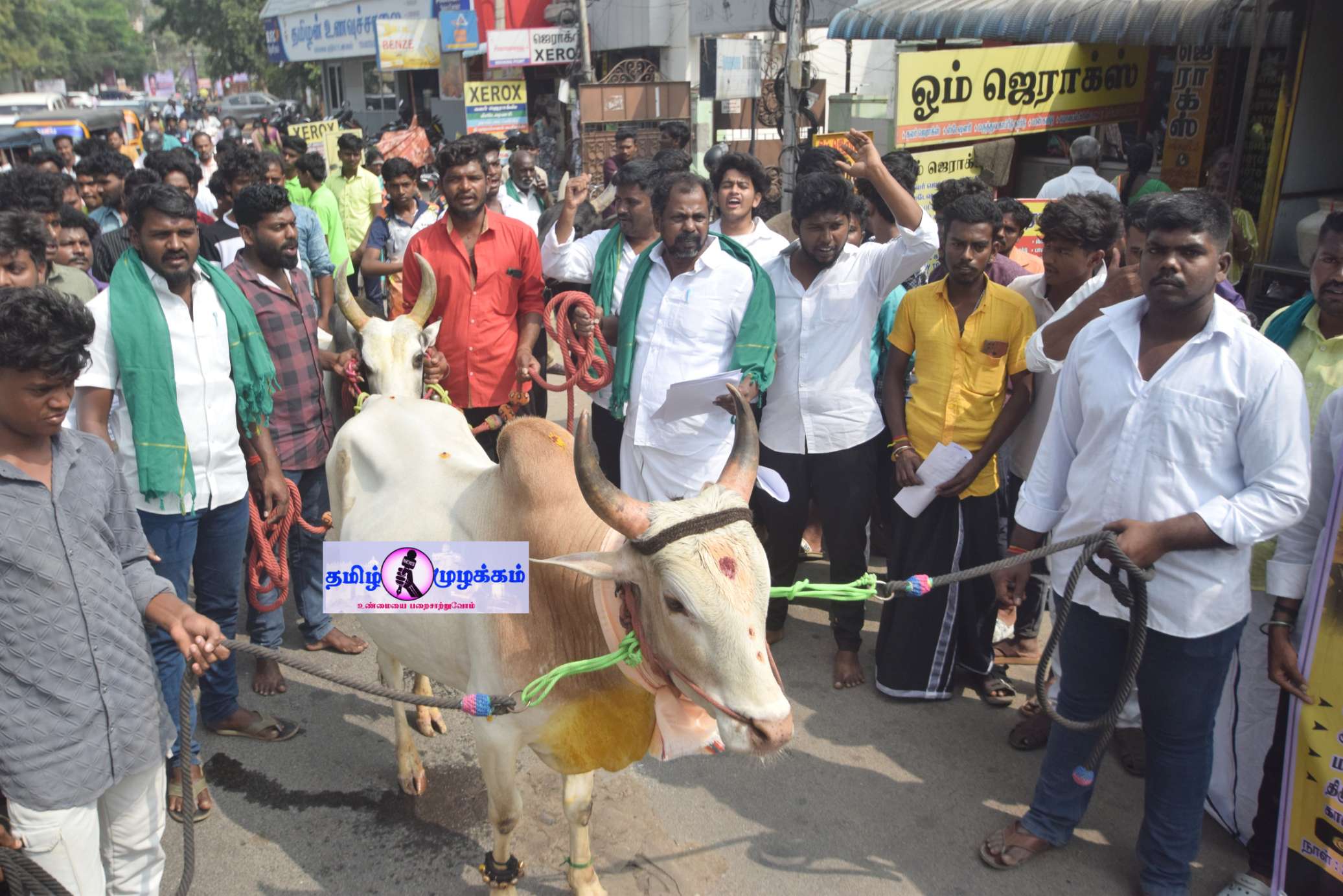தமிழர்களின் வீரம் செறிந்த ஜல்லிக்கட்டு போட்டிகள் தமிழக முழுவதும் ஜனவரி மாதம் முதல் மே மாதம் வரை பல்வேறு மாவட்டங்களில் நடைபெற்று வருகிறது ஜல்லிக்கட்டு போட்டியில் காளைகள் போட்டியில் பங்கேற்பதற்கு ஆன்லைன் மூலம் டோக்கன் வழங்கப்படுகிறது .இதனால் போட்டி நடைபெறும் ஊர்களுக்கு அருகில் உள்ள கிராமங்களில் உள்ள மாடுகளுக்கும், திருச்சி மாவட்டத்தில் உள்ள மாடுகளுக்கும் டோக்கன் கிடைப்பதில்லை. ஆன்லைனில் முதலில் பதிந்தவர்களுக்கு முன்னுரிமை என்ற விதி கடைபிடிக்கப்படுவதில்லை. போட்டி நடத்துபவர்கள் விரும்புவர்களுக்கு மட்டுமே ஆன்லைனில் டோக்கன் கிடைக்கிறது. எனவே மாவட்ட கலெக்டர் இதற்கு உரிய நடவடிக்கை எடுக்க வேண்டும்.ஜல்லிக்கட்டு போட்டியில் ஆன்லைன் மூலம் டோக்கன் வரும் முறையை தவிர்த்து, உள்ளூர் மாடுகள், திருச்சி மாவட்டத்தில் அதிக அளவில் பங்கேற்கும் வகையில் திருச்சி மாவட்டத்தைச் சேர்ந்த காளைகளுக்கு முன்னுரிமை கொடுக்கும் வகையில் 70 சதவீதம் உள்ளூர் காளைகளுக்கும், 30 சதவீதம் வெளி மாவட்ட காளைகளுக்கும் டோக்கன் வழங்க நடவடிக்கை எடுக்க வேண்டும். மேலும் ஜல்லிக்கட்டு காளை வளர்ப்புகளுக்கு மாதம்தோறும் ஒரு ஆயிரம் ஊக்கத்தொகை வழங்கிட நடவடிக்கை எடுக்க வேண்டும். இவ்வாறு அந்த மனுவில் கூறப்பட்டுள்ளது ஜல்லிக்கட்டில் காளைகளுடன் திருச்சி கலெக்டர் அலுவலகத்திற்கு திரண்டு வந்த பொதுமக்களால் சிறிது நேரம் பரபரப்பு ஏற்பட்டது.