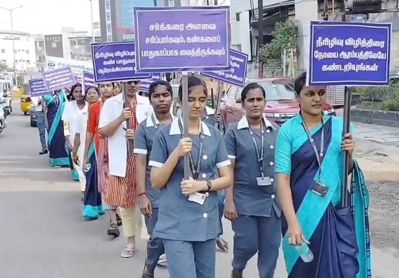 உலக நீரிழிவு நோய் தினத்தை முன்னிட்டு தி ஐ ஃபவுண்டேஷன் மருத்துவமனை சார்பில் கண் ஆரோக்கியம் குறித்த விழிப்புணர்வு பேரணி திருச்சியில் இன்று நடைபெற்றது. இந்த விழிப்புணர்வு பேரணி தி ஐ ஃபவுண்டேஷன், திருச்சி வளாகத்திலிருந்து துவங்கியது. இதில் மருத்துவர்கள், பணியாளர்கள், மாணவர்கள் மற்றும் பொதுமக்கள் ஆர்வமுடன் பங்கேற்றனர். மேலும் நீரிழிவு நோயாளிகள் தங்கள் கண்களை பரிசோதனை செய்வதன் முக்கியத்துவம் வாழ்க்கை முறை கட்டுப்பாடு, மற்றும் ஆரம்ப கட்டத்திலேயே நோயை கண்டறிதல் ஆகியவற்றை வலியுறுத்தும் பலகைகள் மற்றும் விழிப்புணர்வு செய்திகள் ஏந்தி நடைபயணம் மேற்கொண்டனர்.
