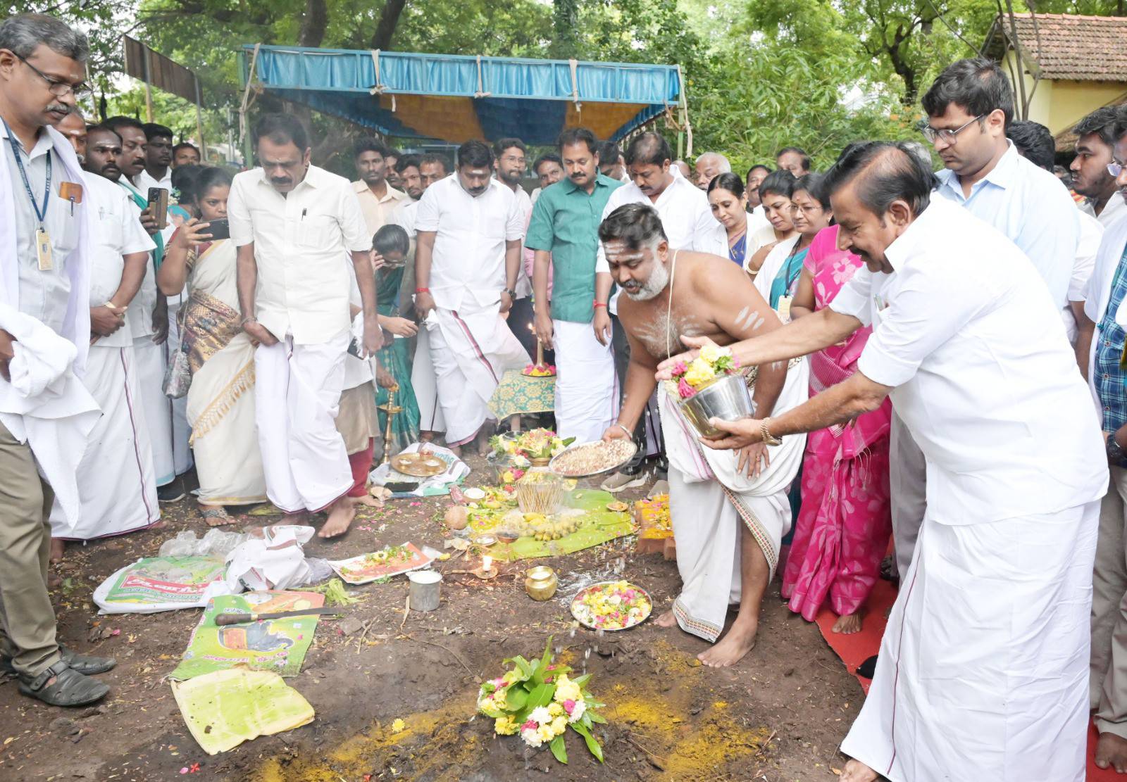 திருச்சி சோமரசம்பேட்டை பகுதியில் உள்ள அரசின சித்த மருத்துவம் அலுவலக வளாகத்தில் ரூபாய் 30 லட்சம் மதிப்பீட்டில் புதிய அரசு சித்த மருத்துவ கட்டிடம் கட்டுவதற்கான பூமி பூஜை விழா இன்று நடைபெற்றது இந்த விழாவில் தமிழக நகராட்சி நிர்வாக துறை அமைச்சர் கே என் நேரு கலந்துகொண்டு அடிக்கல் நாட்டினார். இந்நிகழ்வில் ஸ்ரீரங்கம் சட்டமன்ற உறுப்பினர் பழனியாண்டி கலெக்டர் சரவணன் அரசு அலுவலர்கள் விவசாயிகள் பொதுமக்கள் உள்ளிட்ட ஏராளமானோர் கலந்து கொண்டனர்.
