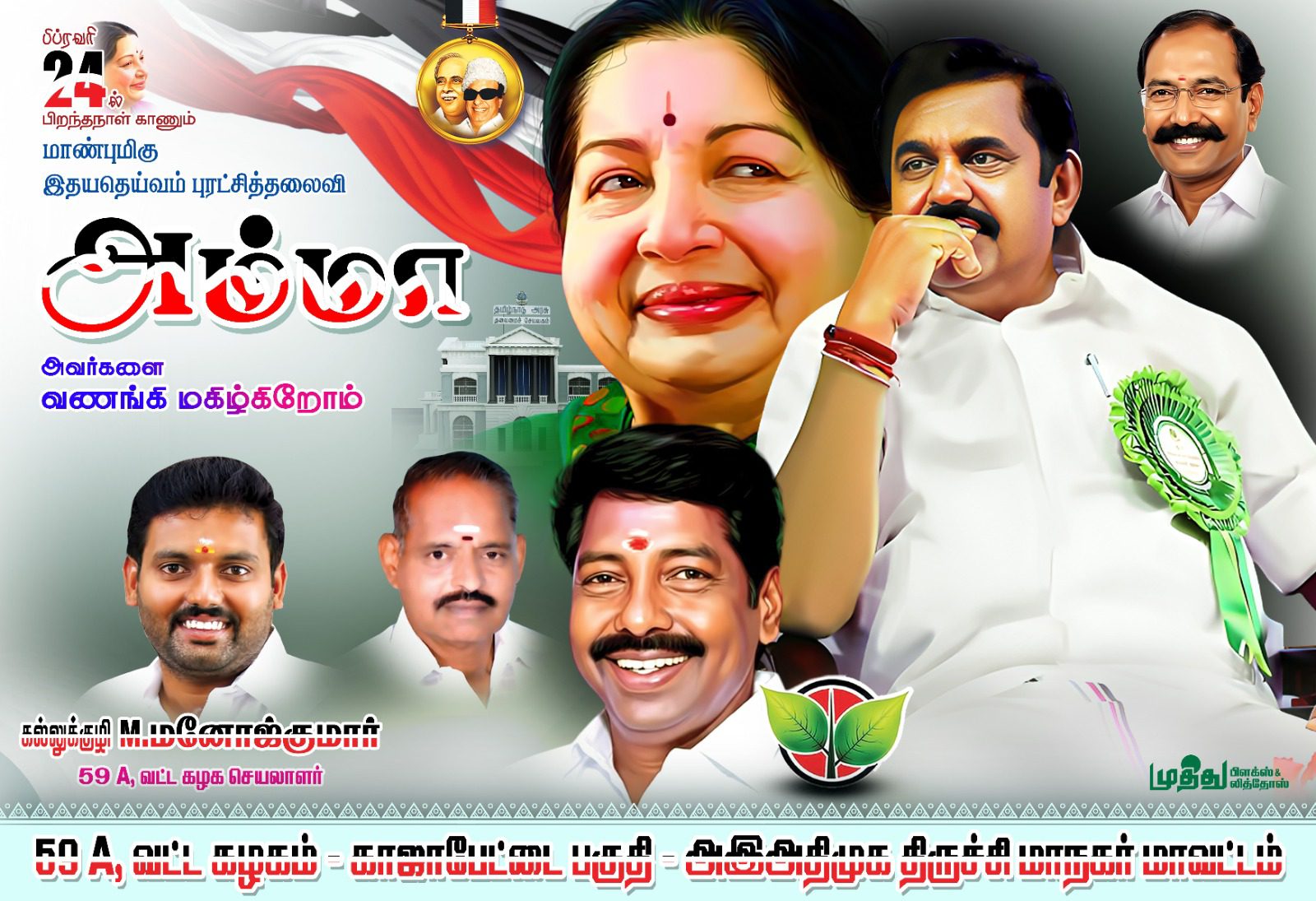 அனைத்திந்திய அண்ணா திராவிட முன்னேற்ற கழகப் பொதுச் செயலாளர் எடப்பாடி பழனிச்சாமி அவர்களின் ஆணைக்கிணங்க மறைந்த முன்னாள் முதலமைச்சர் புரட்சித்தலைவி ஜெயலலிதா அவர்களின் 78 வது பிறந்த நாளை கொண்டாடும் விதமாக திருச்சி மாநகர் மாவட்ட கழகம் சார்பில் மாநகர் மாவட்ட செயலாளரும் முன்னாள் துணை மேயருமான சீனிவாசன் தலைமையில்