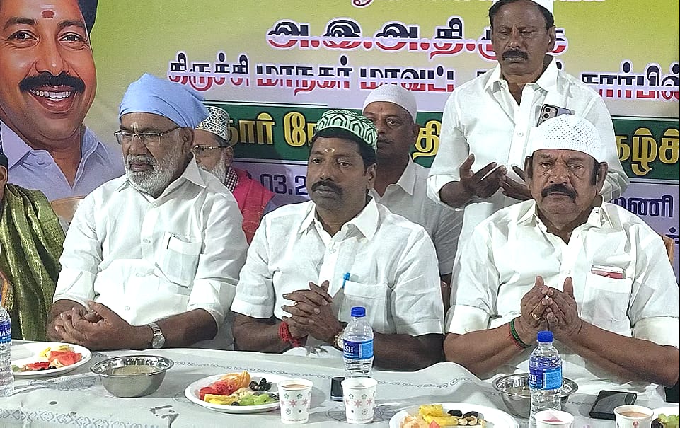 திருச்சி அதிமுக மாநகர் மாவட்ட கழகம் சார்பில் மாநகர் மாவட்ட கழக செயலாளரும் முன்னாள் துணை மேருமான சீனிவாசன் தலைமையில் இப்தார் நோன்பு திறக்கும் நிகழ்ச்சி சத்திரம் பேருந்து நிலையம் அருகே நடைபெற்றது.