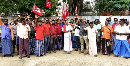 மேற்கண்ட உத்தரவு வழங்கப்பட்டு 25 நாட்கள் ஆன பின்பும் அரசு அதிகாரிகள் , காவல் துறையினர் தொழிலாளர்களை வேலைக்கு சேர்த்து விட எந்தவித நடவடிக்கையும் எடுக்காத போக்கை கண்டித்து சிஐடியுலாரி லாரி புக்கிங் ஆபிஸ் லோடுமேன் ஜெனரல் ஒர்க்கர்ஸ் யூனியன் சார்பில் வெள்ளியன்று மாவட்ட ஆட்சியர் அலுவலகம் அருகில் ஆர்ப்பாட்டம் நடந்தது. ஆர்ப்பாட்டத்திற்கு சி.ஐ.டி.யு லாரி புக்கிங் ஆபிஸ் லோடுமேன் ஜெனரல் ஒர்க்கர்ஸ் யூனியன் மாவட்ட செயலாளர் ஜி.கே.ராமர் தலைமை தாங்கினார். ஆர்ப்பாட்டத்தை விளக்கி சிபிஎம் மாவட்ட செயற்குழு உறுப்பினர் ராஜா, சுமைப்பணி சங்க மாவட்ட தலைவர் தக்காளி ரமேஷ், மாவட்ட துணைத்தலைவர் தக்காளி செந்தில், தக்காளி மண்டி சங்க நிர்வாகி ஆரோக்கியம், லாரி செட் சங்க துணைத் தலைவர் ராமர், லாரி செட் சங்க பொருளாளர் மூர்த்தி ஆகியோர் பேசினர்.இதில் ஏராளமான சுமைப்பணி தொழிலாளர்கள் கலந்துகொண்டு கோரிக்கைகளை வலியுறுத்தி கோஷமிட்டனர்.
