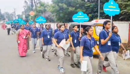 திருச்சி எஸ்ஆர்வி பள்ளியை சேர்ந்த மாணவர்கள் சுமார் ஆயிரத்திற்கும் மேற்பட்டவர்கள் திருச்சி மத்திய பேருந்து நிலையம் பகுதியில் விழிப்புணர்வு பேரணி சென்றனர். டிஜிட்டல் அடிமை தவிர்ப்போம், சமூக ஊடகத்தில் எல்லை மீறாதீர், லைக் ஷேர் நமது திறமை இல்லை நம் நடத்தைதான் திறமை, வாசிப்பே மாற்றத்தின் விதை, கற்றோருக்கு சென்ற இடமெல்லாம் சிறப்பு போன்ற பதாகைகளை கைகளில் ஏந்தி மாணவர்கள் பேரணியாக நடந்து சென்றனர்.