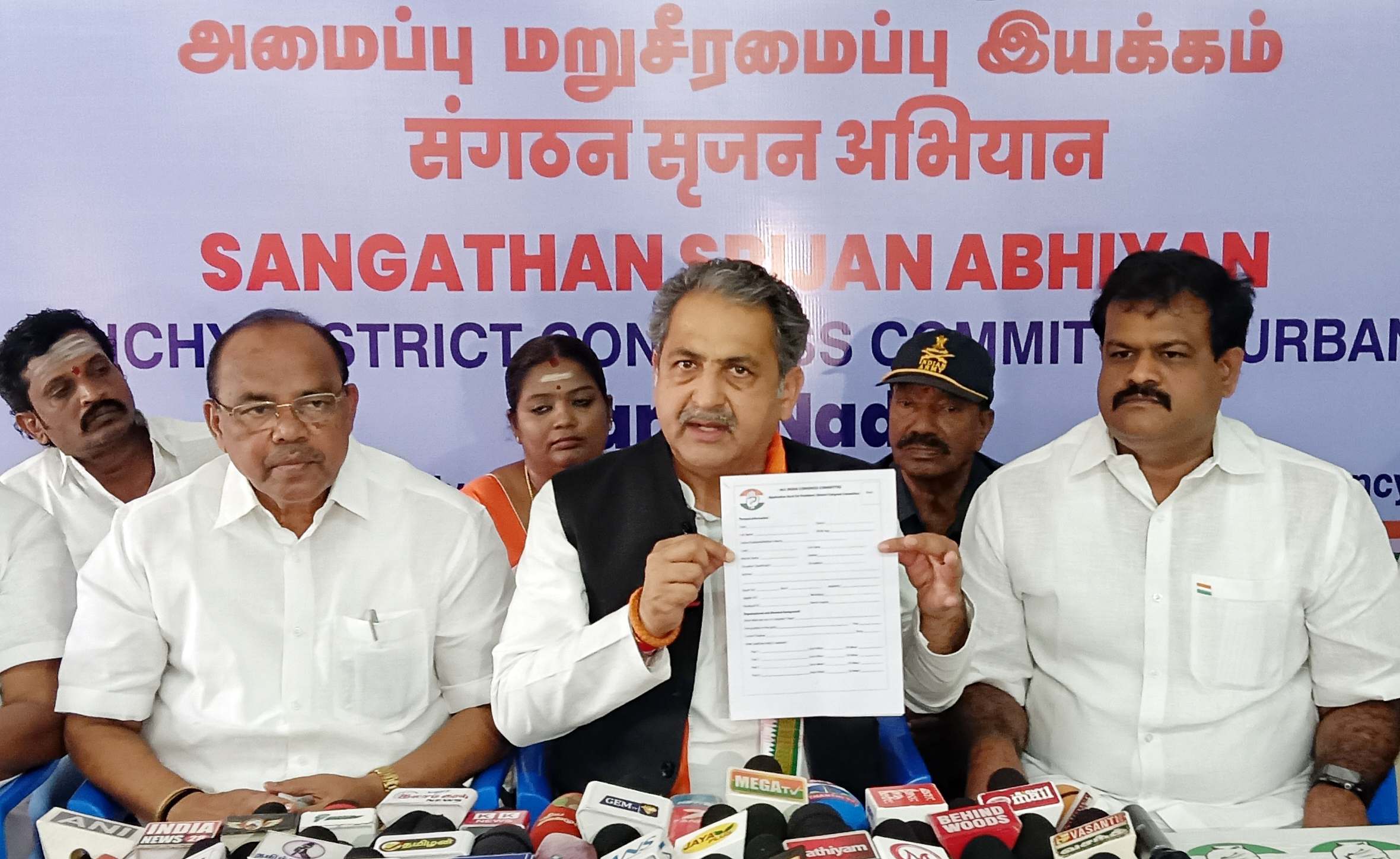 திருச்சி மாநகர் மாவட்ட காங்கிரஸ் கமிட்டி சார்பில் கட்சியின் அமைப்பு மறு சீரமைப்பு தொடர்பான நிர்வாகிகள் ஆலோசனை கூட்டம் தியாகி அருணாச்சலம் மன்றத்தில் நடைபெற்றது. இதில் அகில இந்திய காங்கிரஸ் கமிட்டி இணைப் பொருளாளர் மற்றும் அகில இந்திய காங்கிரஸ் சொத்து பாதுகாப்பு குழு தலைவர் முன்னாள் மத்திய மந்திரி விஜய் இந்தர் சிங்கிலா சிறப்பு அழைப்பாளராக கலந்து கொண்டு புதிய மாவட்ட தலைவர்கள் நியமனம் தொடர்பாக கருத்து கேட்டு ஆலோசனைகள் வழங்கினார். அவர் பேசும்போது, மாவட்ட தலைவர்களை தேர்ந்தெடுக்க உங்களின் கருத்துக்களை கேட்க வந்திருக்கின்றேன். யாரை மாவட்ட தலைவராக நியமித்தால் காங்கிரஸ் கட்சி வெற்றி பெற முடியும் என்பது உங்களுக்கு தான் தெரியும். மாவட்ட பொறுப்புகளுக்கு குற்றபின்னணி உள்ளவர்களை நியமிக்க கூடாது என ராகுல் காந்தி தெரிவித்துள்ளார். ஆகவே கட்சிக்கு விசுவாசமானவர்கள் மற்றும் கட்சிக்கு உழைத்தவர்களை மட்டும் அடையாளம் காட்டுங்கள் என்றார்.