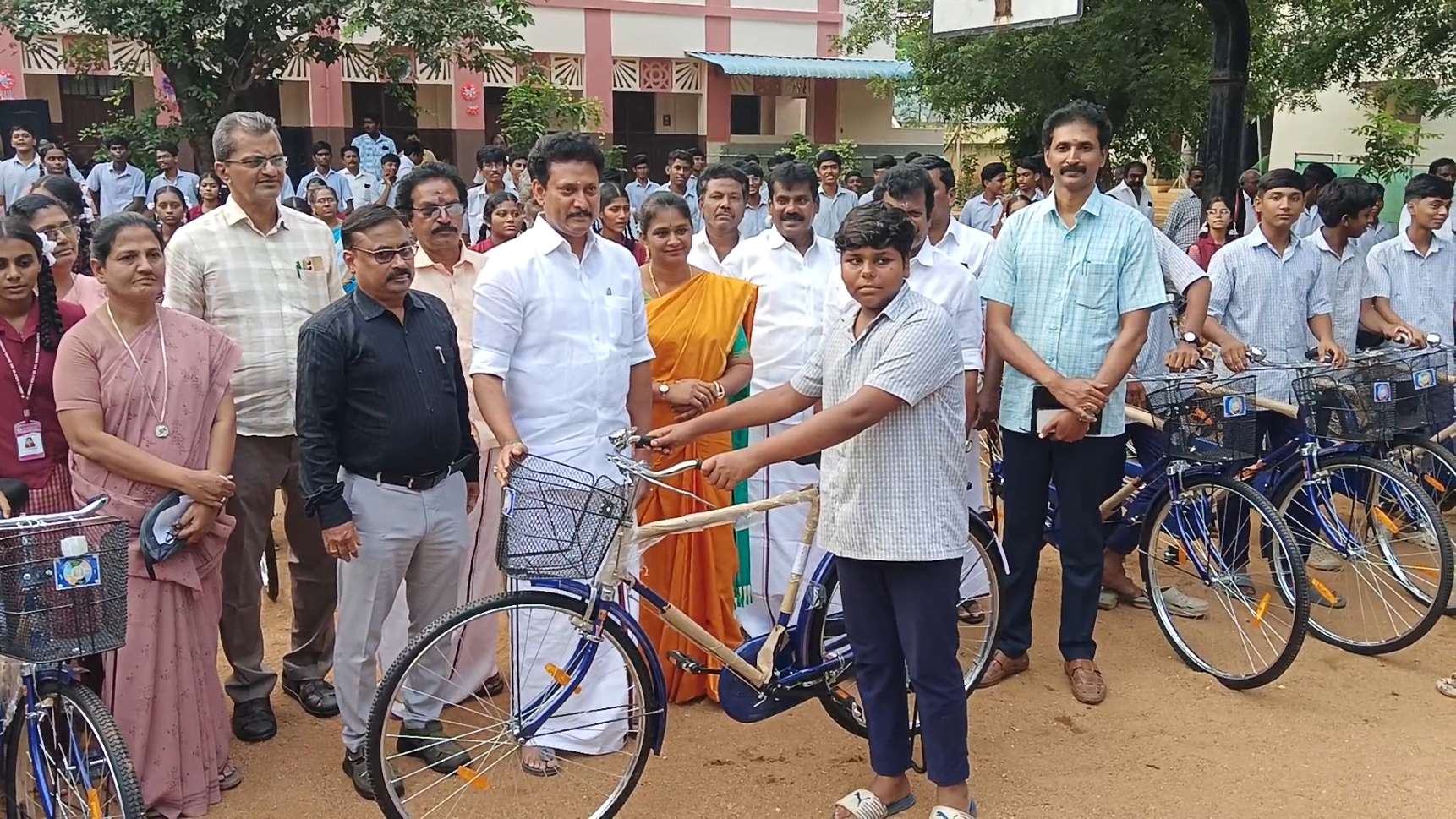 பொன்மலைப்பட்டி பகுதியில் உள்ள புனித வளனார் பெண்கள் மேல்நிலைப்பள்ளி புனித சிலுவை பெண்கள் மேல்நிலைப்பள்ளி பொன்மலை திரு இருதய ஆண்கள் மேல்நிலைப்பள்ளி பொன்மலைப்பட்டி அரசு ஆதி திராவிட நல பெண்கள் மேல்நிலைப்பள்ளி காட்டூர் அரசு ஆதி திராவிட நல ஆண்கள் மேல்நிலைப் பள்ளி காட்டூர் முக்குலத்தோர் மேல்நிலைப்பள்ளி திருவெறும்பூர் பாய்லர் பிளாண்ட் பெண்கள் மேல்நிலைப்பள்ளி கைலாசபுரம் பாய்லர் பிளாண்ட் ஆண்கள் மேல்நிலைப்பள்ளி கைலாசபுரம் அரசு மேல்நிலைப்பள்ளி, அரசங்குடி குழந்தை இயேசு பெண்கள் மேல்நிலைப்பள்ளி துவாக்குடி மலை அரசு மேல்நிலைப்பள்ளி, துவாக்குடி அரசு மேல்நிலைப்பள்ளி, தேனேரிப்பட்டி அரசு மேல்நிலைப்பள்ளி, சோழமாதேவி விலையில்லா மிதிவண்டிகள் வழங்கும் விழா இன்று நடைபெற்றது இவ்விழாவில் ஆண்கள் 589 பெண்கள் 1043 மொத்தம் கூடுதல் 1632 ஆகிய மிதிவண்டிகள் பள்ளி கல்வித்துறை அமைச்சர் முனைவர் அன்பில் மகேஸ் பொய்யாமொழி கலந்துகொண்டு மாணவ மாணவிகளுக்கு விலையில்லா மிதிவண்டிகளை வழங்கினார்.