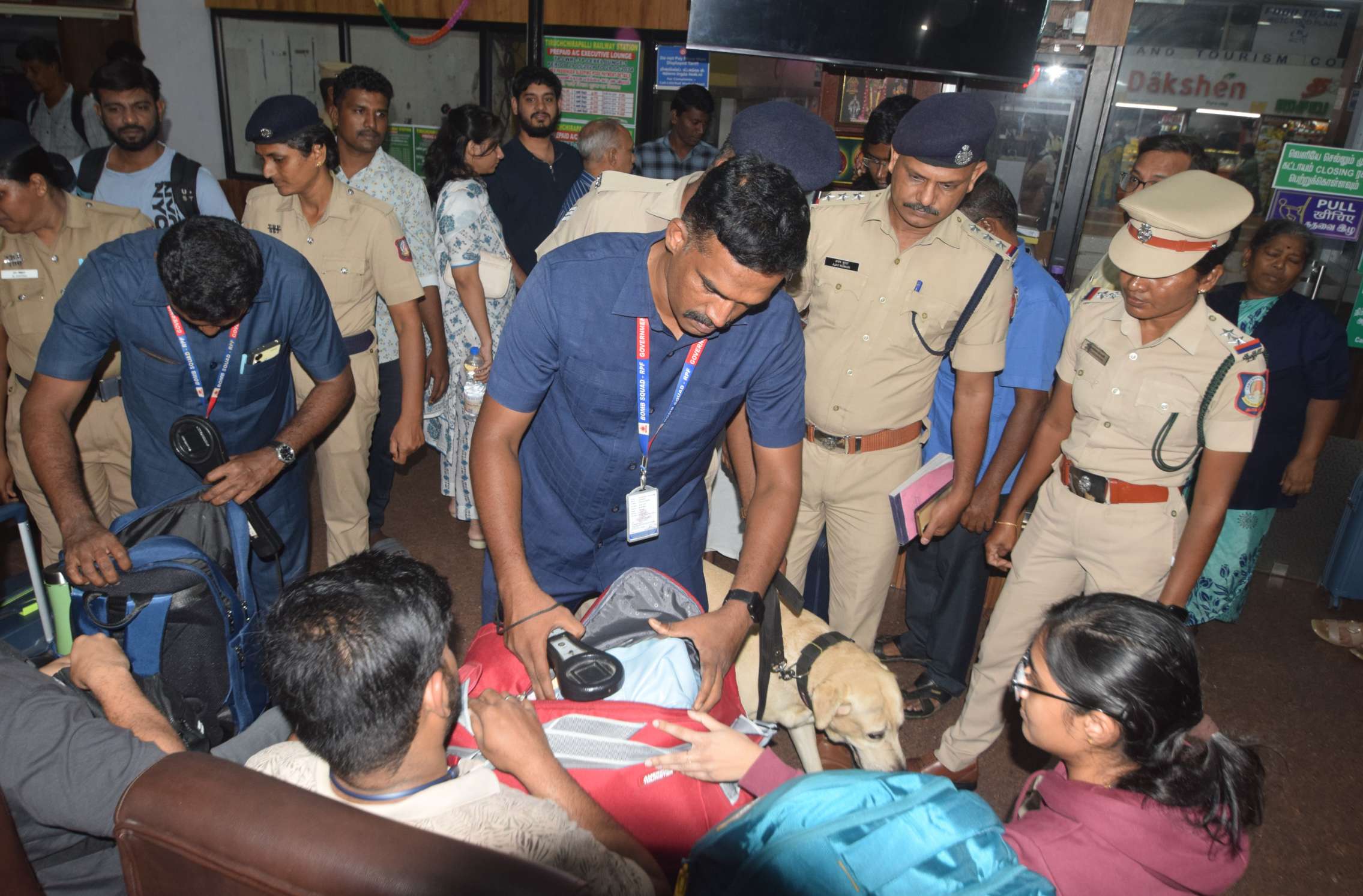 ரயில்வே போலீஸ் உதவி ஆய்வாளர் தலைமையில், இன்று மாலை திருச்சி ரயில்வே பாதுகாப்பு படை, சப் இன்ஸ்பெக்டர் குருநாதன், தலைமைக் காவலர் பேட்சிநாதன், வெடிகுண்டு தடுப்பு பிரிவு கணேசன் & இளையராஜா & உதவி ஆய்வாளர் / ரயில்வே போலீஸ் மற்றும் மோப்பநாய் ராக்கி உதவியுடன் பயணிகளின் பாதுகாப்பு ஏற்பாடுகள் தொடர்பாக, திருச்சி ரயில் நிலையத்தில் பயணிகள் தங்கும் அறை, ரயில் நிலைய வாயிலில் பயணிகள் எடுத்து வரும் பைகளை சோதனை செய்தும் ரயில் உள்ளே சென்று அமர்ந்திருந்த பயணிகளின் உடைமைகளை சோதனை செய்தும் மோப்பநாய் உதவியோடு போலீசார் இந்த சோதனையில் ஈடுபட்டனர். ரயில் நிலையம் முழுவதும் தீவிர நாசவேலை தடுப்பு சோதனை நடத்தப்பட்டது.