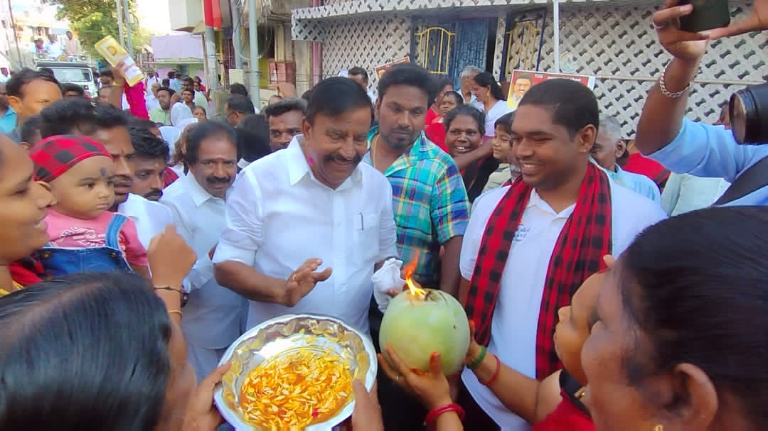 மேலும் 6 வயது பையன் உற்சாகத்தில் அமைச்சரின் வாகனத்தில் ஏறி எங்கள் ஓட்டு உதயசூரியனுக்கு என்று ஆரவாரத்துடன், மகிழ்ச்சியோடு கூறினான் அருகில் மாநகர செயலாளர் மேயருமான மு அன்பழகன் மாவட்ட துணைச் செயலாளர் முத்து செல்வம், விஜயா ஜெயராஜ் மற்றும் கழக நிர்வாகிகள் காஜாமலை விஜய் மார்சிங் பேட்டை செல்வம், உட்பட பலர் உடன் சென்றனர்