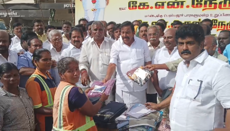 இதனை தொடர்ந்து திருச்சி மத்திய பேருந்து நிலையம் அருகில் உள்ள கல்வி கண் திறந்த காமராஜரின் திருவுருவ சிலைக்கு மாலை அணிவித்து மரியாதை செலுத்தி பின்னர் தூய்மை பணியாளர்களுக்கு நலத்திட்ட உதவிகளை வழங்கினார்.