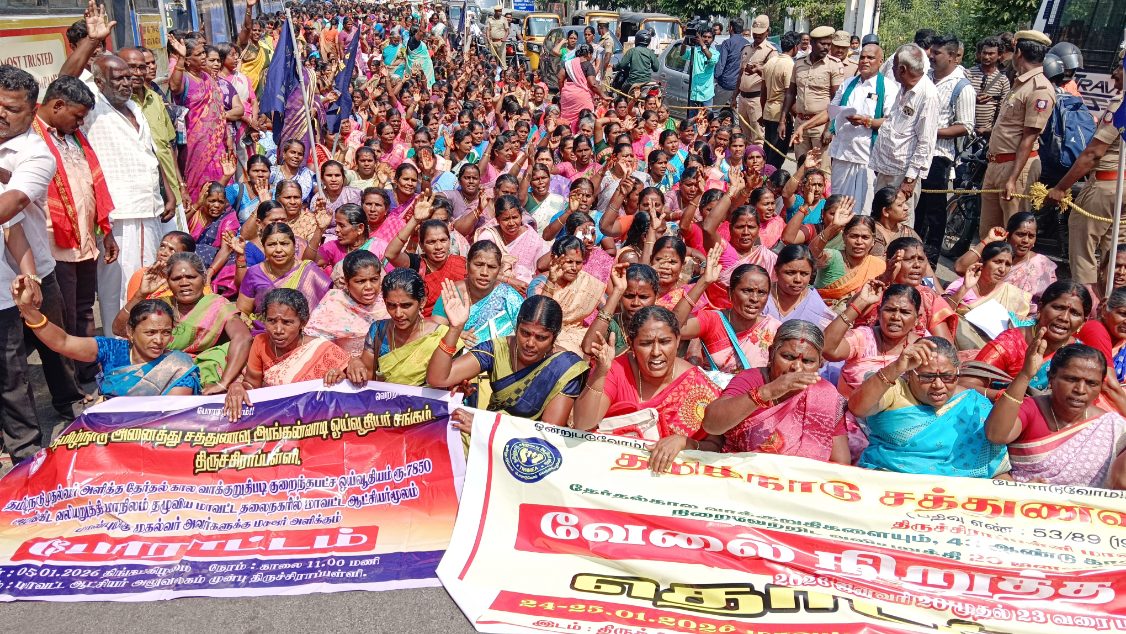 தேசிய நெடுஞ்சாலை – 67 சுற்றுச்சாலைக்காக 10 ஏரிகளில் போடப்பட்ட சட்டவிரோத சாலைகளை அகற்றி மேம்பாலங்கள் கட்ட வரும் 2026 மத்திய பட்ஜெட்டில் நிதி ஒதுக்க வலியுறுத்தி திருச்சி கருமண்டபத்தில் உள்ள இந்திய தேசிய நெடுஞ்சாலை ஆணையம் முன்பு தமிழக விவசாயிகள்…