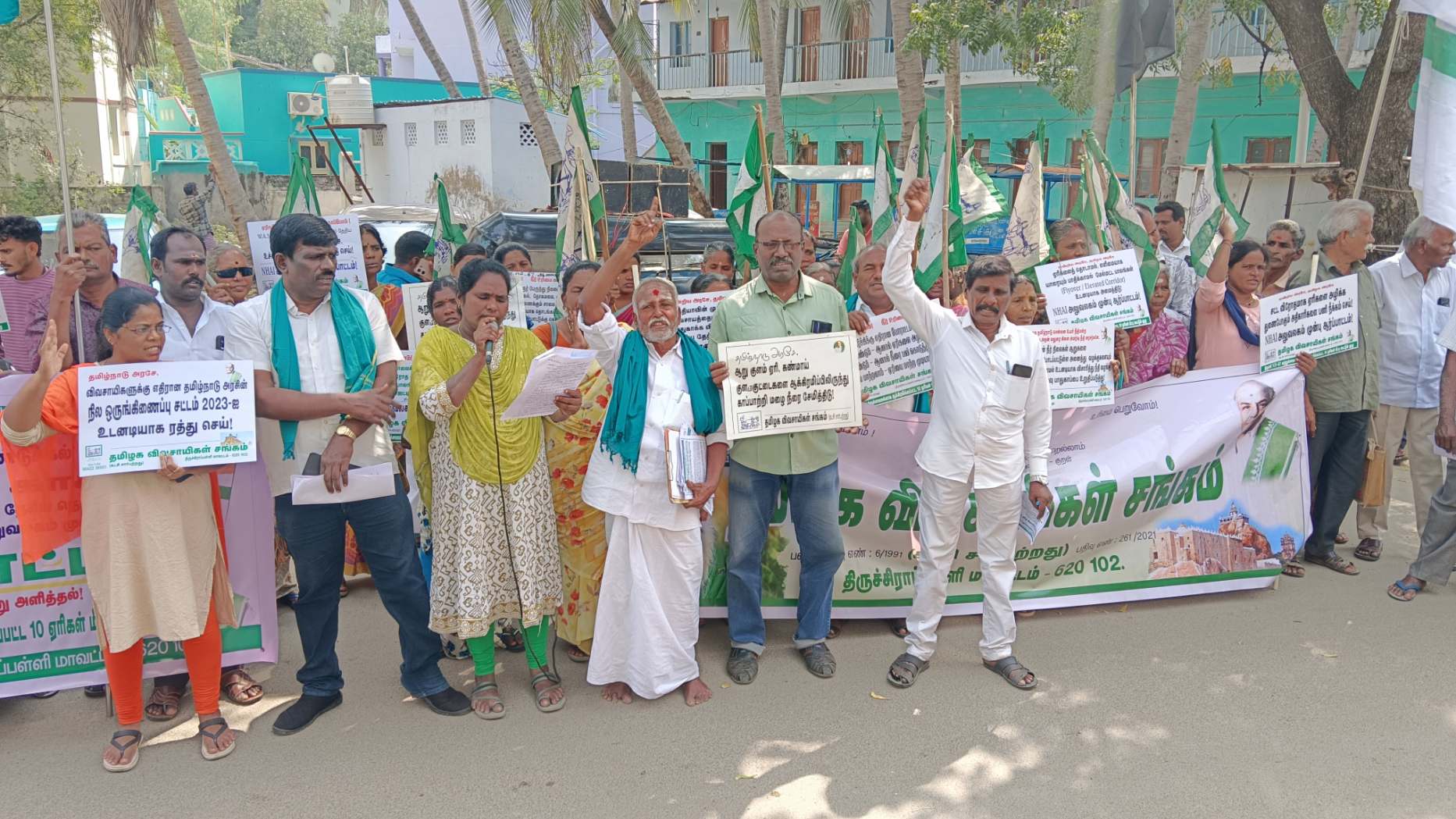 ஏரிகளை பாதுகாக்க கோரி இந்திய தேசிய நெடுஞ்சாலை ஆணையத்தை முற்றுகையிட்டு விவசாயிகள் போராட்டத்தால் திருச்சியில் பரபரப்பு:-